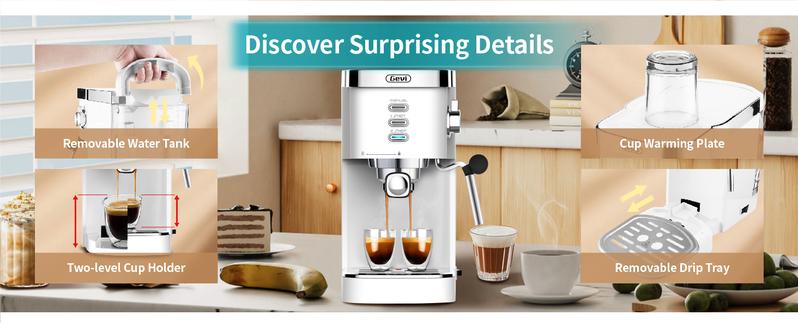 ☕ 20-Bar Pressure for Perfect Espresso: Enjoy rich, full-bodied espresso with the Gevi Espresso Machine’s 20-bar professional pump and 1350W double boiler. Create café-style cappuccinos, lattes, and more at home!