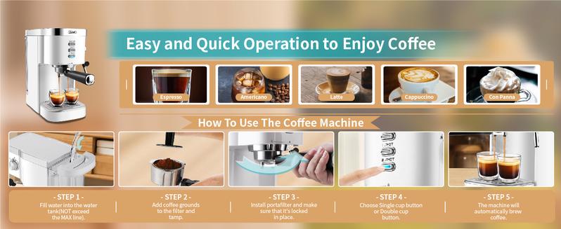 🧼 Easy to Clean & Compact: Designed to fit any kitchen, with a detachable water tank and drip tray for easy cleaning. Includes portafilter, coffee scoop/tamper, and more.