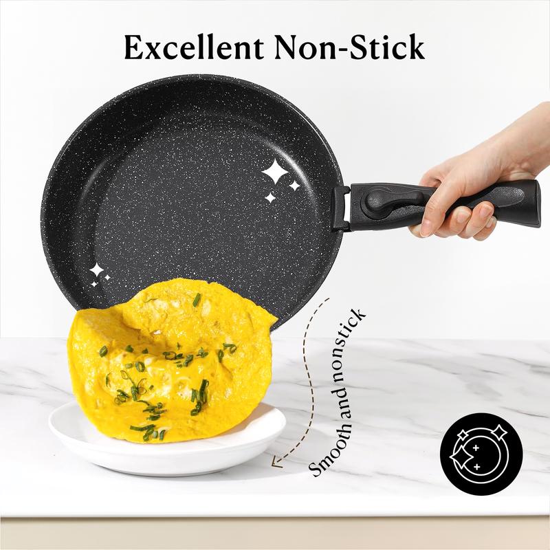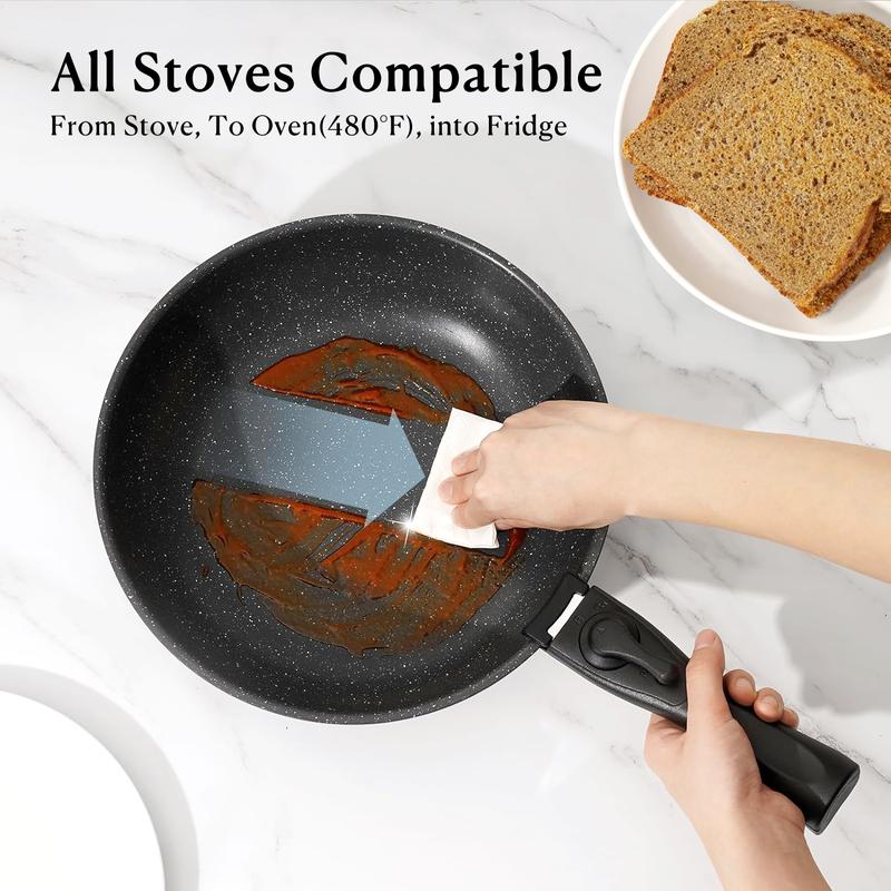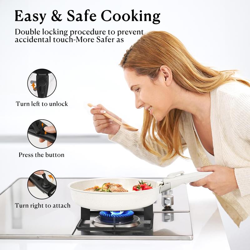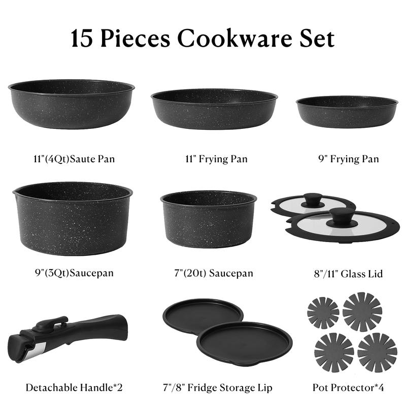 Crafted from high-quality granite material, this cookware set ensures durability along with a healthy non-stick cooking experience. Whether you are at home or on the road in your RV kitchen space will no longer be an issue with these detachable handle pots and pans. The pack includes 15-17 pieces to cater to all your culinary needs effectively.