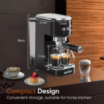 Gevi espresso coffee machine, featuring a 20 Bar pump, 1350W powerful and double volume boiler, produces rich, aromatic espresso with enhanced flavor and oil extraction. All flavors are evenly drawn out during the extraction process. Use our cappuccino maker to effortlessly craft cappuccinos, lattes, or flat whites in the comfort of your home or workplace.