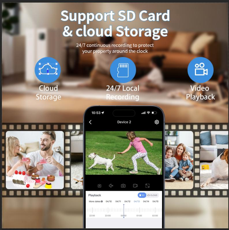 Secure & Private: Military-grade encryption keeps your footage safe from hackers. Support SD Card or Cloud Service Subscription