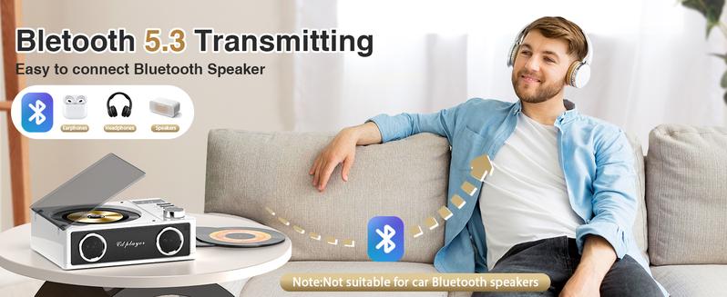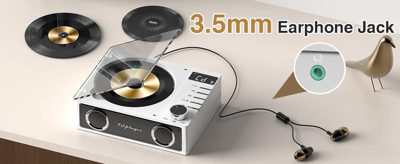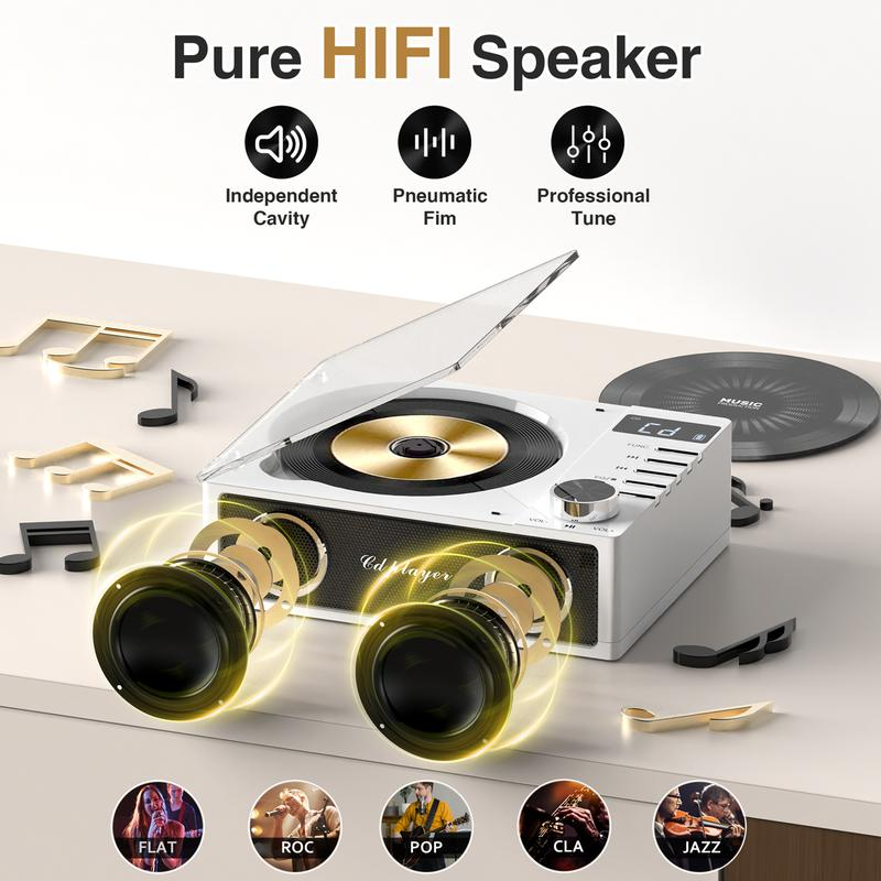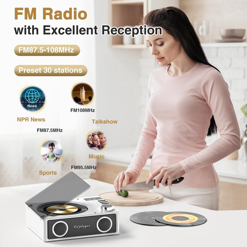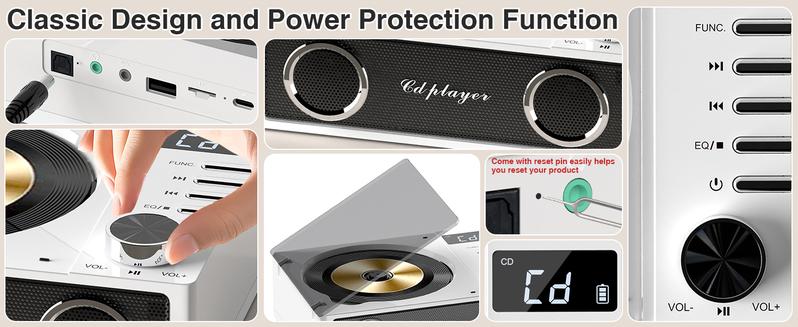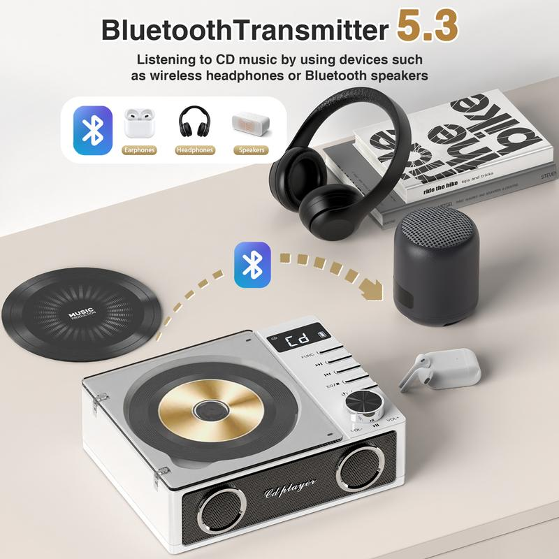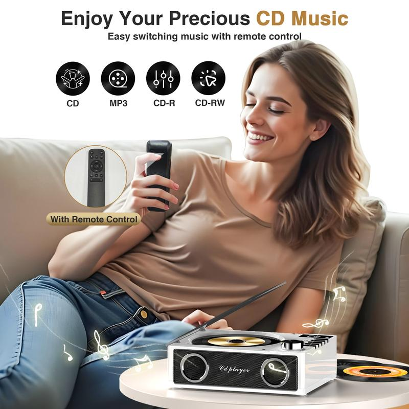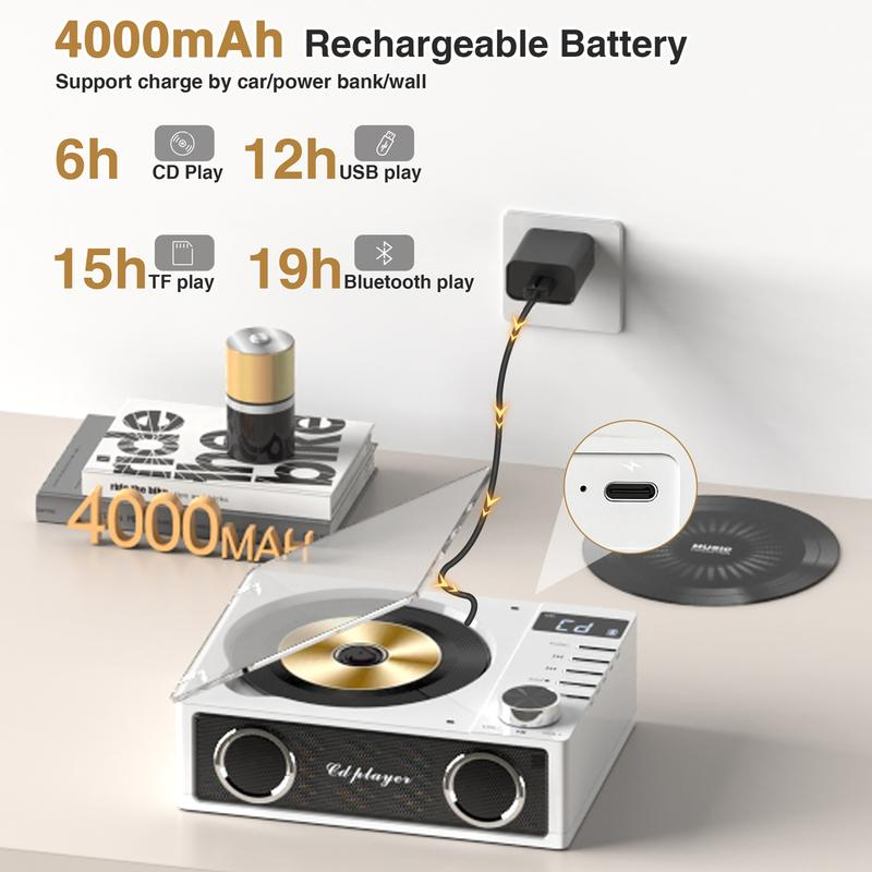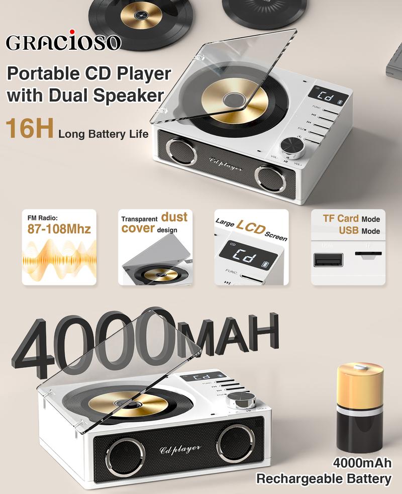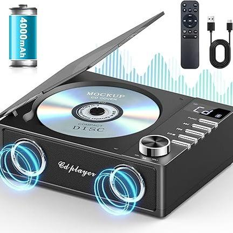 4000Mah Rechargeable CD Player with Dual Speakers, Bluetooth Portable CD Player with FM Radio,Desktop CD Player with Remote Control, LCD Display, Support USB/TF Card/Aux/3.5Mm Headphone Jack for Home