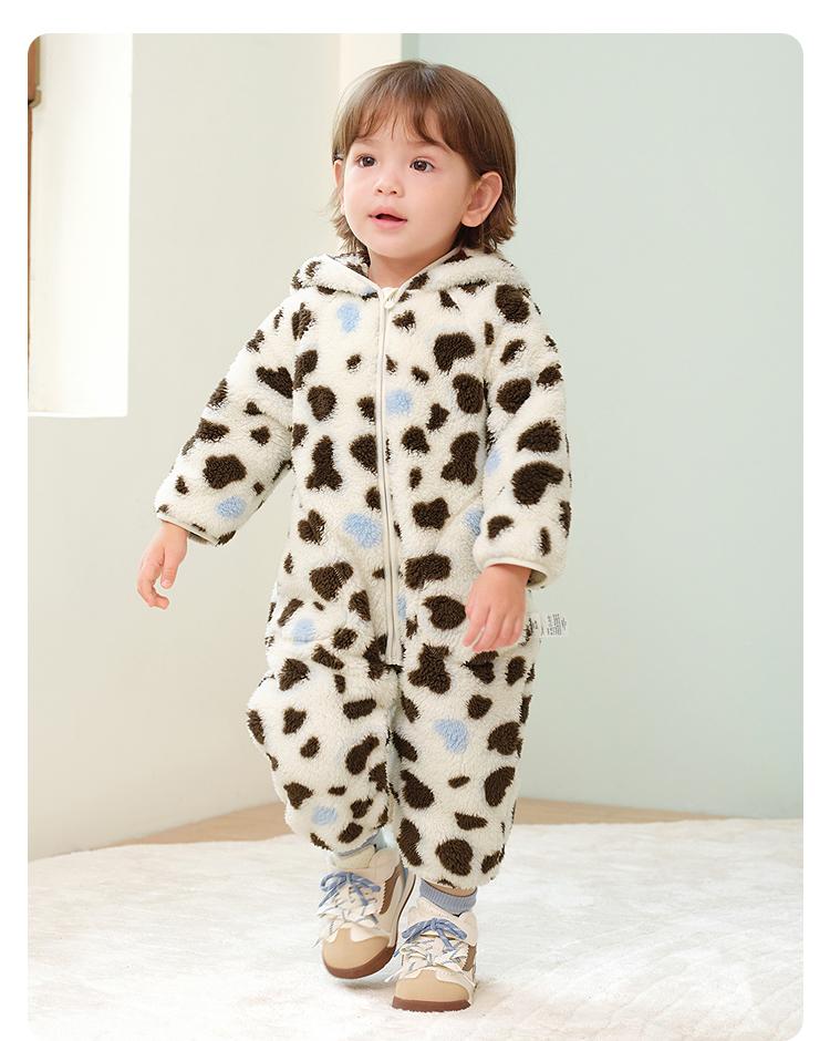 This adorable jumpsuit is designed for kids, ensuring comfort and style. It features a playful animal print that will delight any child. The soft fleece material makes it snuggly and perfect for chilly days. 🐱🐶