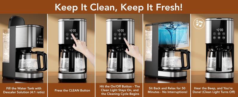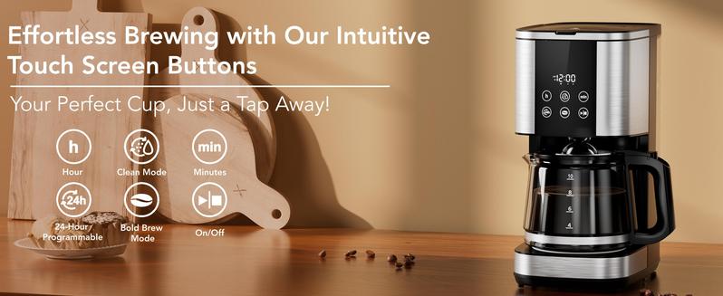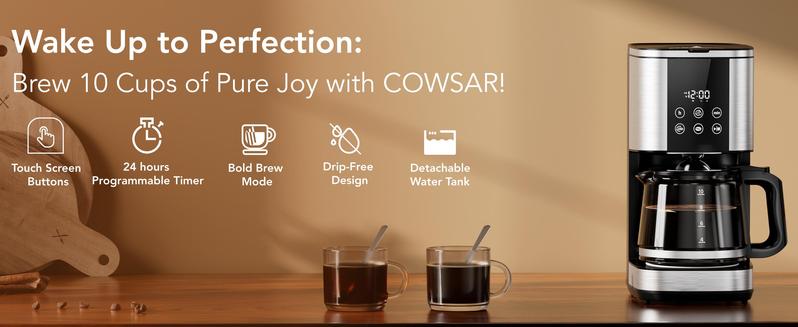 COWSAR 10-Cup Coffee Maker, 24-Hour Programmable Coffee Brewer, Keep Warm, Drip Free, Washable Filter, Stainless Steel, Black