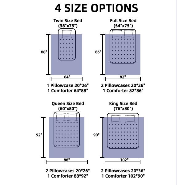 • 1 pinch pleated comforter (64×88 inches) + 1 pillowcase (20×26 inches).