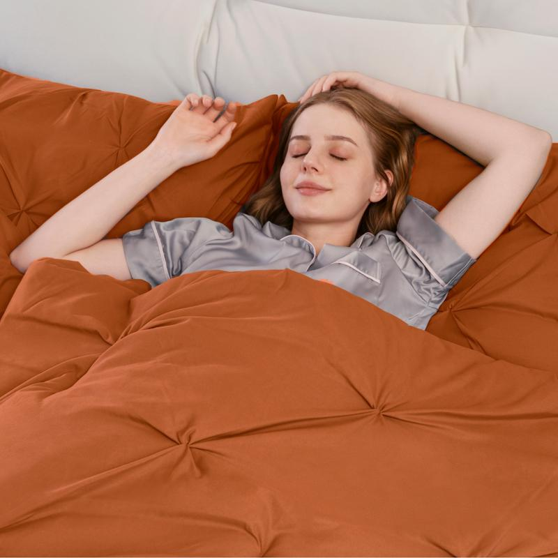 The DOWNCOOL Elegant Pinch Pleat Comforter Set is a 3-piece set designed for twin size beds. It features a lightweight microfiber fabric that ensures softness and fluffiness. The set includes a comforter and two pillowcases, perfect for all seasons. This set is ideal for those seeking a stylish yet comfortable bedding solution.