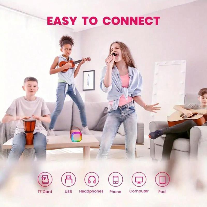 The mini karaoke system has a durable handle design, is lightweight, and wireless. It’s ideal for various events, enhancing the party atmosphere with colorful LED lights that sync with the music. This portable speaker ensures a vibrant, engaging experience for children and adults alike. Enjoy the joy of singing in any setting with this compact, portable karaoke system.