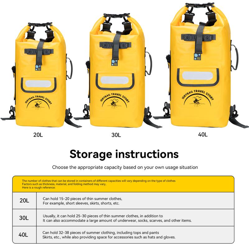 Introducing the IDRYBAG waterproof backpack dry bag, designed for versatility and convenience in various outdoor activities. This durable and waterproof bag is perfect for hiking, climbing, camping, biking, and more.
