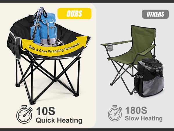 【Heated Outdoor Chair】Heated camping chair comes with 20000mAh Power Bank ️, (Please identify carefully, some products do not come with a power bank)utilizes USB-powered heating technology. You can use the heating and non-heating functions according to the temperature and your needs, providing warmth and comfort for your body in cold weather.