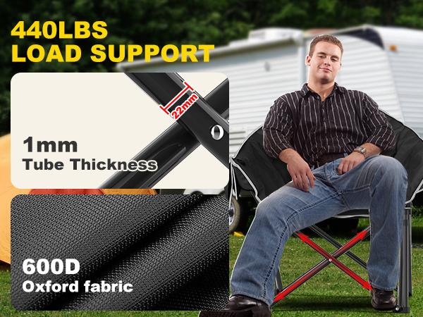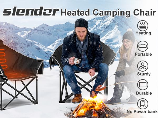 【Ergonomic Design】Comfortable angle for the backrest according to ergonomics is between 103 to 112 degrees. Slendor heated chair has a backrest angle of 108 degrees. When you lean back on the camp chair, the cervical spine and back fit more closely to the backrest. With built-in thick padding and a pillow, it provides a more comfortable sitting posture.