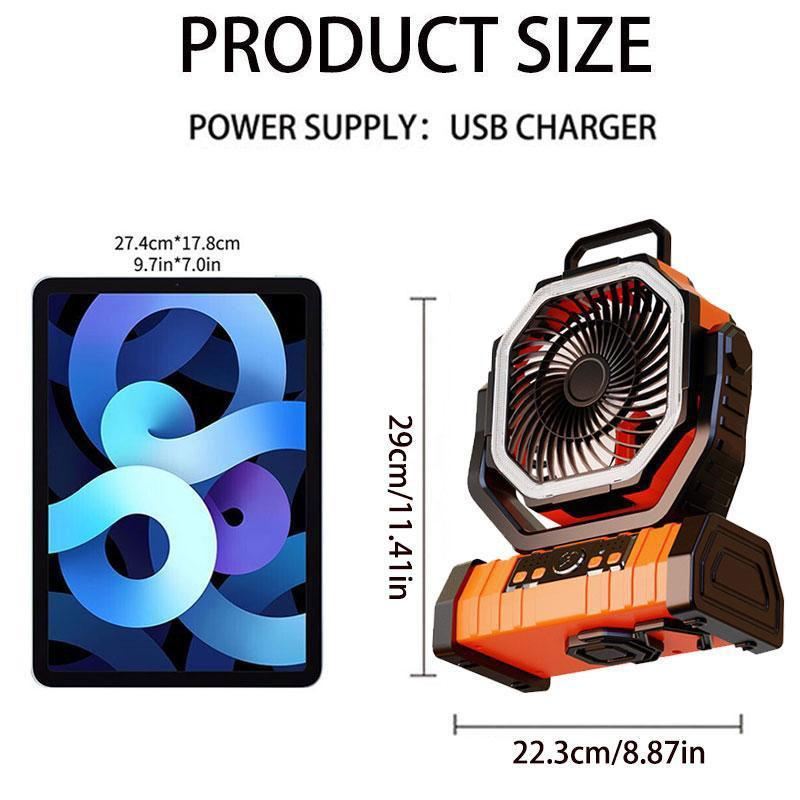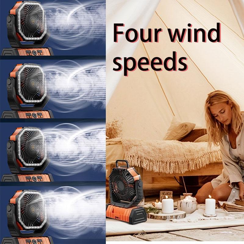 【Adjustable Lighting】: The camping fan features three lighting levels, ensuring you can set the perfect brightness for any situation while outdoors.