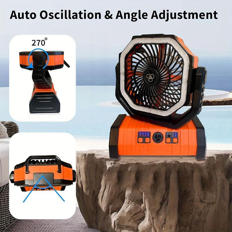 【Powerful Battery】: With a 10000mAh battery, this fan promises long-lasting operation, perfect for extended outdoor trips without constant recharging.