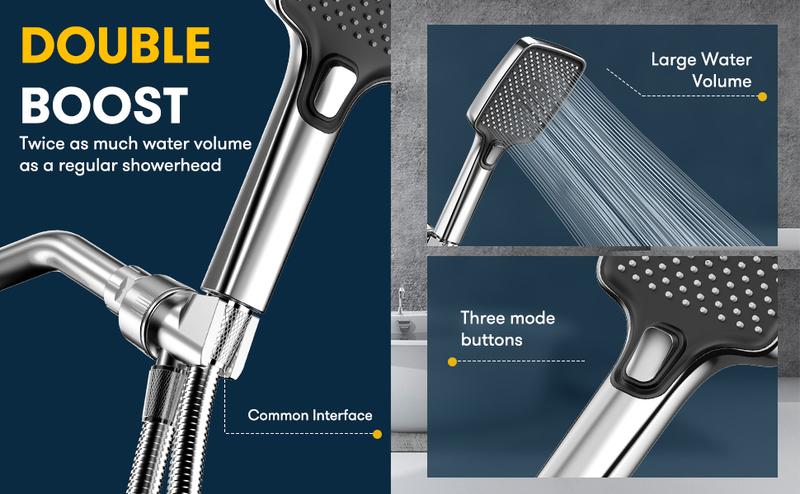 ROLAKUL Handheld Showerhead-High Pressure Shower Head – Anti-Clog Nozzles, Built-In Power Wash to Clean Tub, Tile & Pets, Extra Long 6 Ft. Stainless Steel Hose, Wall & Overhead Brackets- 3 Spray Modes, Adjustable Angle Shower Head with Hose