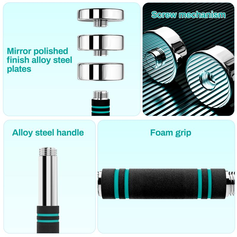 The adjustable dumbbells feature a mirror-polished surface for a brighter gloss and a more refined appearance. The premium foam handles not only look upscale but also reduce hand pain and provide comfort, even in cold weather conditions.