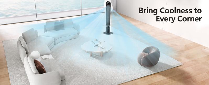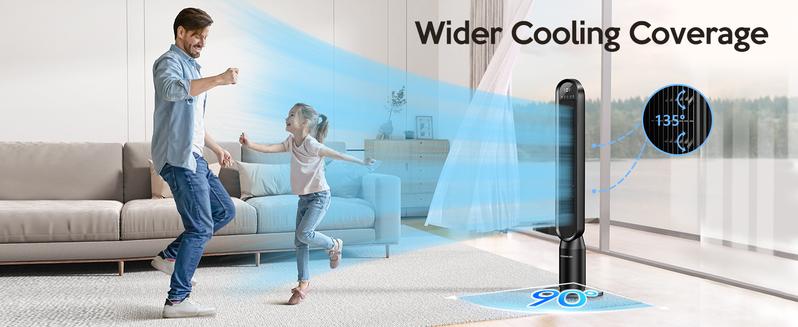 【Cooling for Whole Family】With a unique 90° oscillation+135° up-down adjust design, the cooling area was 2 times of the ordinary fans. whether standing or sitting, everyone near you can feel the coolness as well in a stuffy space.