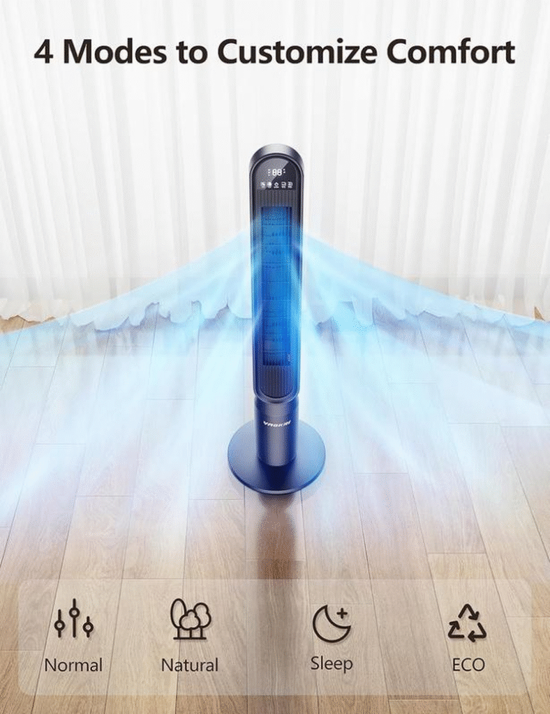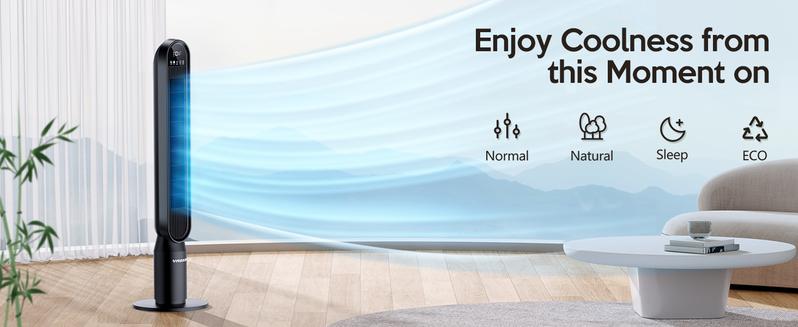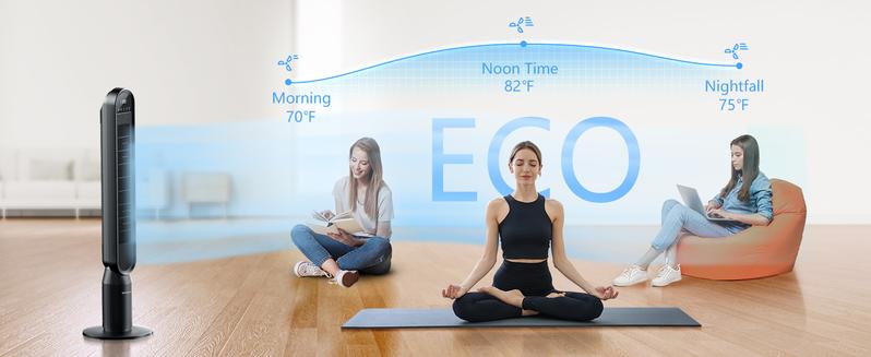 【Create Your Own Comfort】4 fan speeds+4 fan mode (ECO, Normal, Natural, or Sleep) to satisfy your desired cooling needs with touch panel or the remote.In ECO mode, the velocity of the wind will auto change with the ambient temperature, allowing your room to always stay pleasant and healthy.