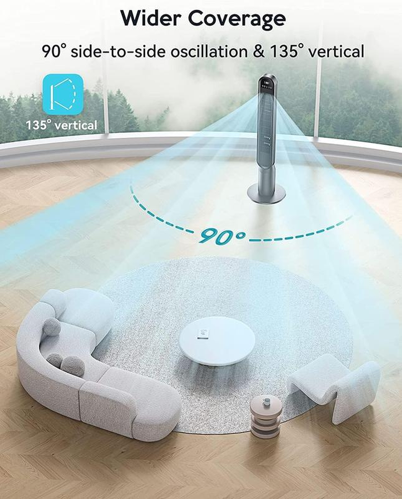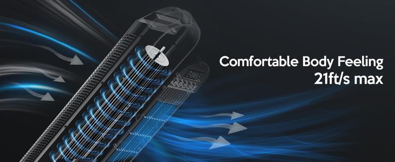 【Instantly Beat the Heat】This 42-inch compact tower fan enlivens every inch of air in your living space fast at up to 24ft/s. Fast cooling down provides all-day cooling comfort, With a slim and sturdy design that perfectly fits your Living rooms, Home offices, Bedrooms, and more.
