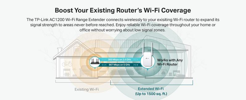 - Extend Wi-Fi Coverage : Boost Internet Wi-Fi Coverage up to 1500 Square feet and connects up to 30 devices – Compatible with any Wifi Router or access point¹²