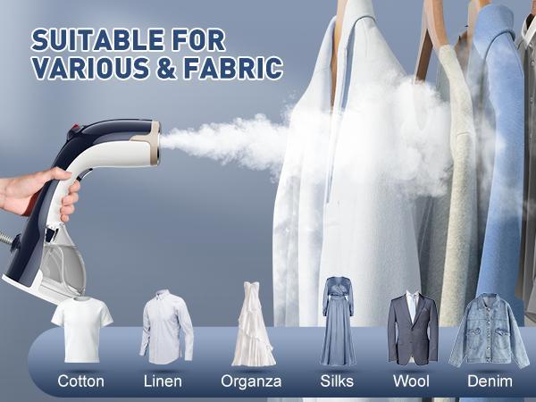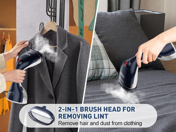 - 【VERSATILE FOR ALL FABRIC】Portable steamer for clothes are safe for a wide range of fabrics, be it cotton, linen, chiffon, silk or wool. In addition to garments, it can also iron other home textiles such as curtains and sheets to keep them smooth and fresh. Includes a 2-in-1 fabric brush accessory that brushes away lint and dust from clothing while steam ironing to enhance efficiency