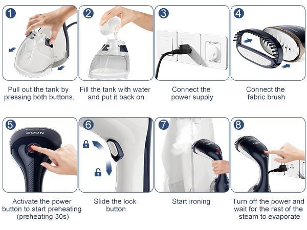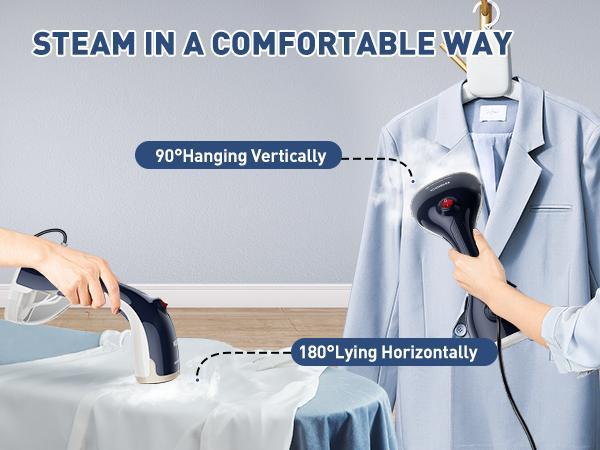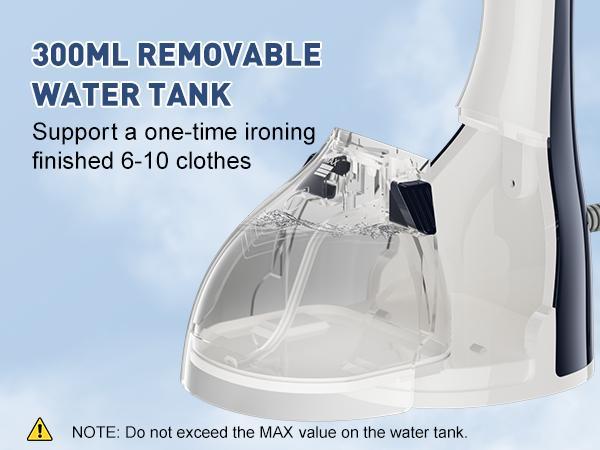- 【300ML LARGE CAPACITY EXTENDED USE】Clothes steamer handheld comes with a large 300ML removable water tank capable of up to 15 min of continuous steam. At the maximum water tank capacity, it can easily handle more than 6 garments. Simple one-button operation with a comfortable grip provides you with a relaxing ironing experience