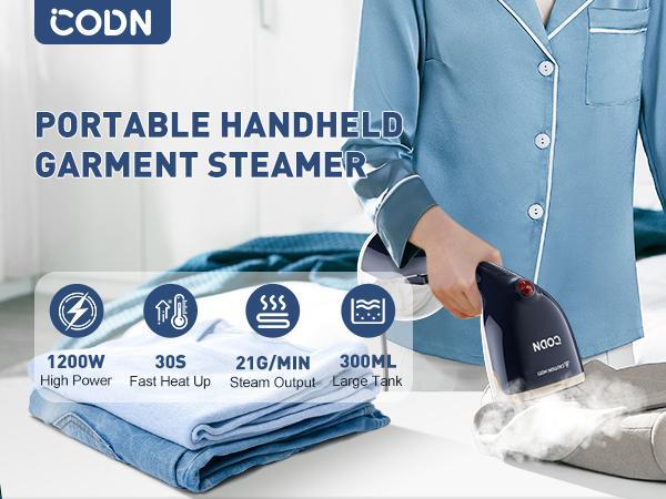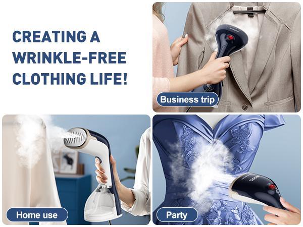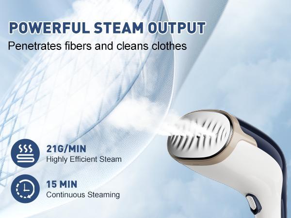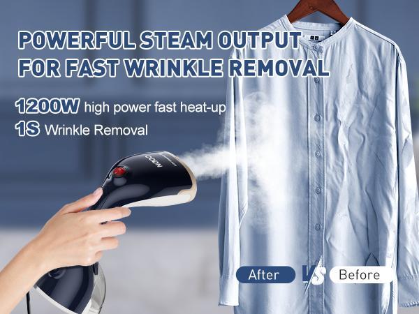- 【QUICK WRENKLE REMOVAL】1200W high power steamer for clothes provides 30s fast heating and produces a powerful steam output of 21G/Min. The steam penetrates deep into the fibers of your clothes to effectively remove creases. Whether it’s a heavy winter coat or a light summer shirt, creases can be smoothed out with ease