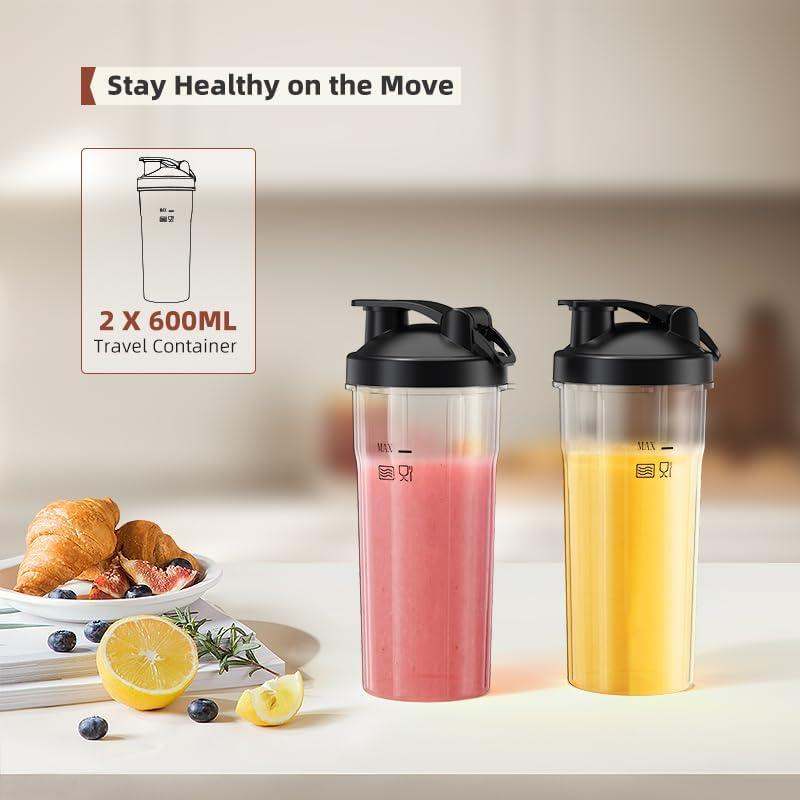 【304 Stainless Blades and 2 Cups】Blender blade is made of 304 stainless steel, featuring a 4-blade cross and a flat 2-blade design that can easily blend and extract nutrients. It comes with 2 * 20 oz BPA-Free blender cups, which can easily meet the needs of a family for making juices and smoothies.