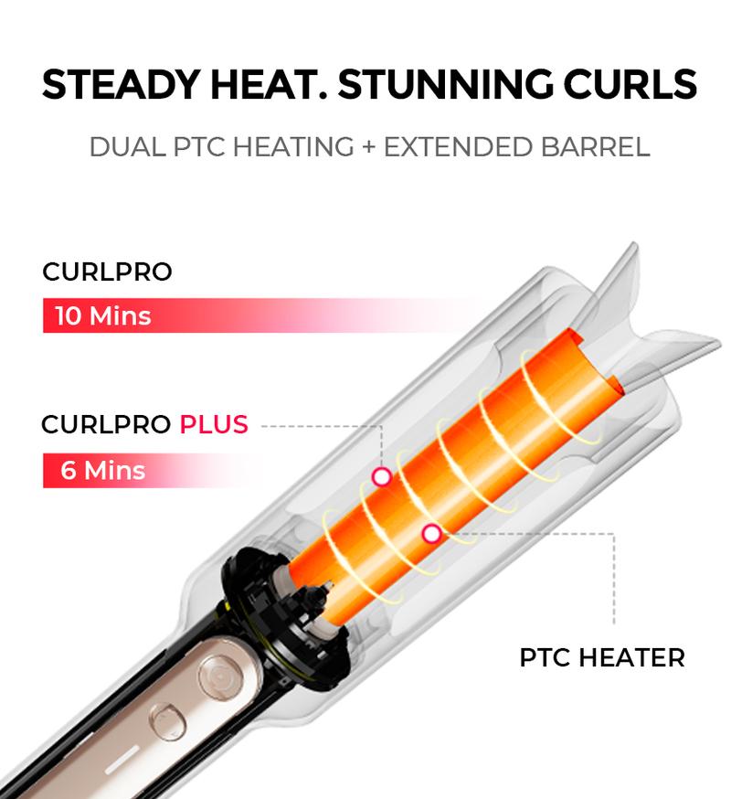 TYMO CURLPRO PLUS automatic curling iron curls hair with just a press of a button. Built-in timer signals when your curl is ready, making it effortless to create perfect curls—even for beginners.