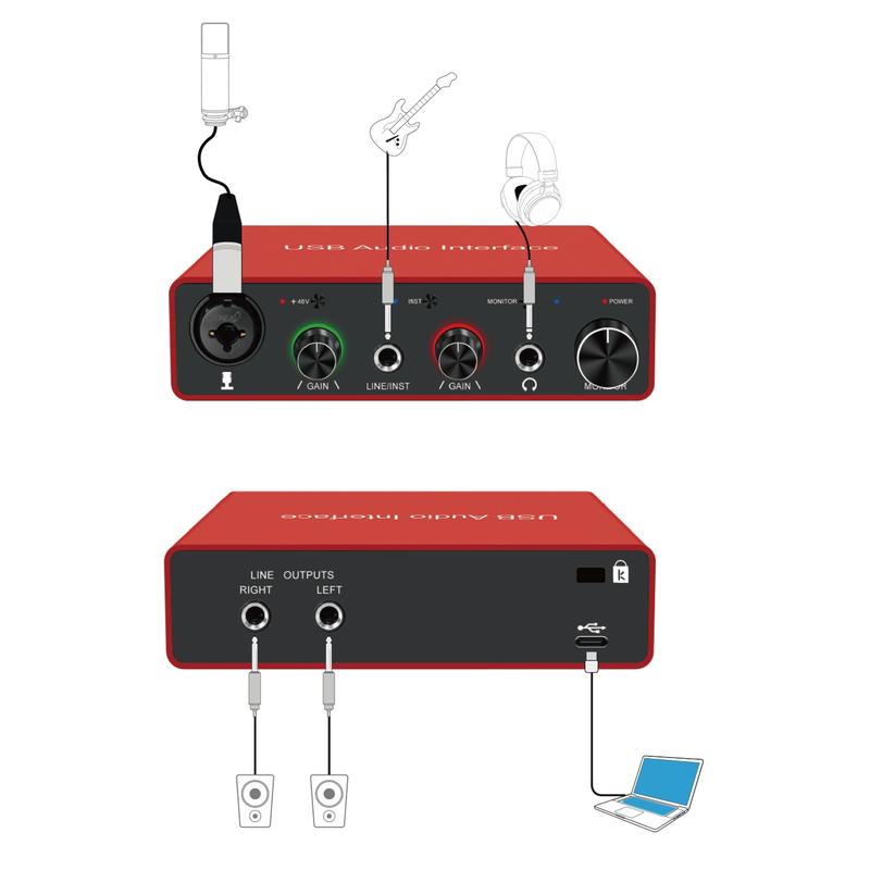 【Noiseless Operation】: Designed for minimal noise interference, this interface ensures a clean audio signal for your recording sessions.