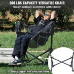 Rock in Comfort: This camping hammock chair is all about stability with its larger seating area and high backrest that fully supports your back. You can enjoy a smooth rocking motion without needing trees or ropes. The adjustable backrest lets you find your ideal angle for reading, napping, or just soaking in the scenery.