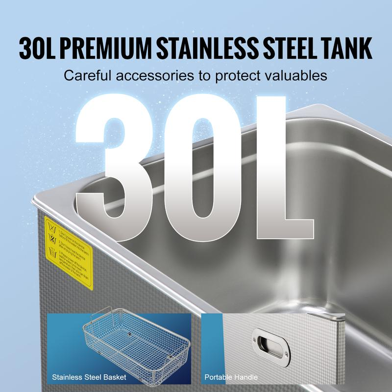 • Quality You Can Trust: Designed with a premium SUS304 stainless steel tank and basket, the 30L securely holds and cleans various valuable items like jewelry, eyeglasses, and watches. Attention to detail ensures that each item receives a meticulous cleaning.