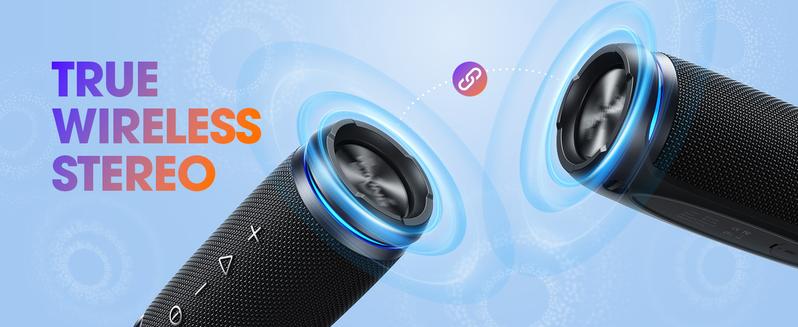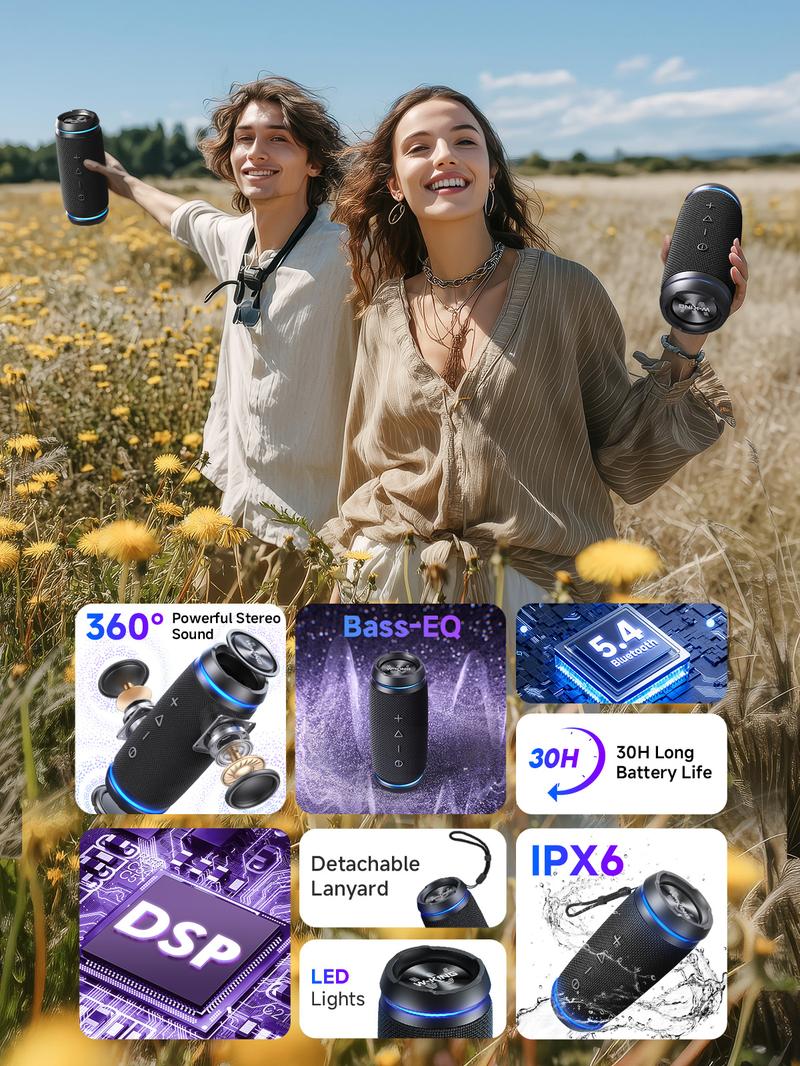 360° Surround Sound & Hi-Fi Audio – Dual full-range drivers in the front and back deliver 360° surround sound with consistent volume and clarity from all angles. The speakers bluetooth wireless matches an advanced DSP chip which achieves zero-distortion for hi-fi audio, and reproducts orignal sound. Let you listen to your favorite singer live as if you were there. Whether you’re hosting a backyard BBQ, enjoying a road trip, or relaxing at home, this bluetooth speaker an immersive experience