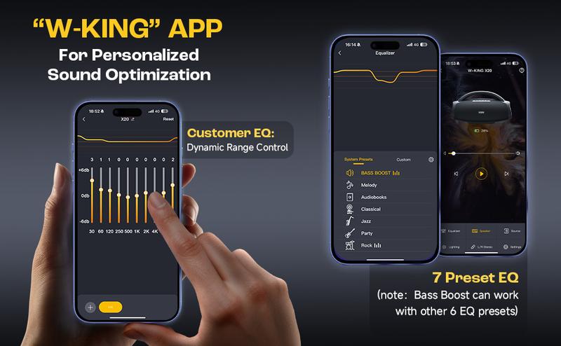 - Custom Sound APP: X20 large bluetooth speakers wireless support “W-KING” APP, so you can tailor the sound according to your preferences. you can boost or attenuate specific frequency ranges, allowing the large bluetooth speakers wireless to enhance the deepest bass end or emphasize treble for clearer vocals and instrumentals. Whether it’s streaming music, watching movies, or playing games, you can customize EQ presets to enhance the audio experience for each type of content