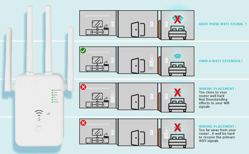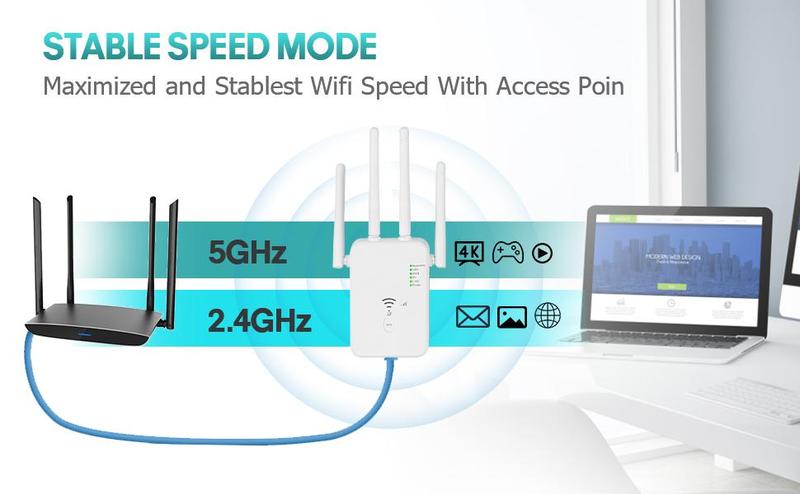 Wifi Range Extender Repeater 1200Mbps Wireless Amplifier Router Signal Booster.2.4G 5G Dual-Band, Home Office Internet Extender