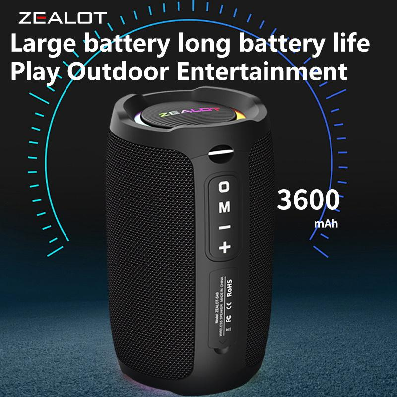 【Long Battery Life 】ZEALOT S49 bluetooth speaker has a 3600mAh big battery that can play for up to 12 hours